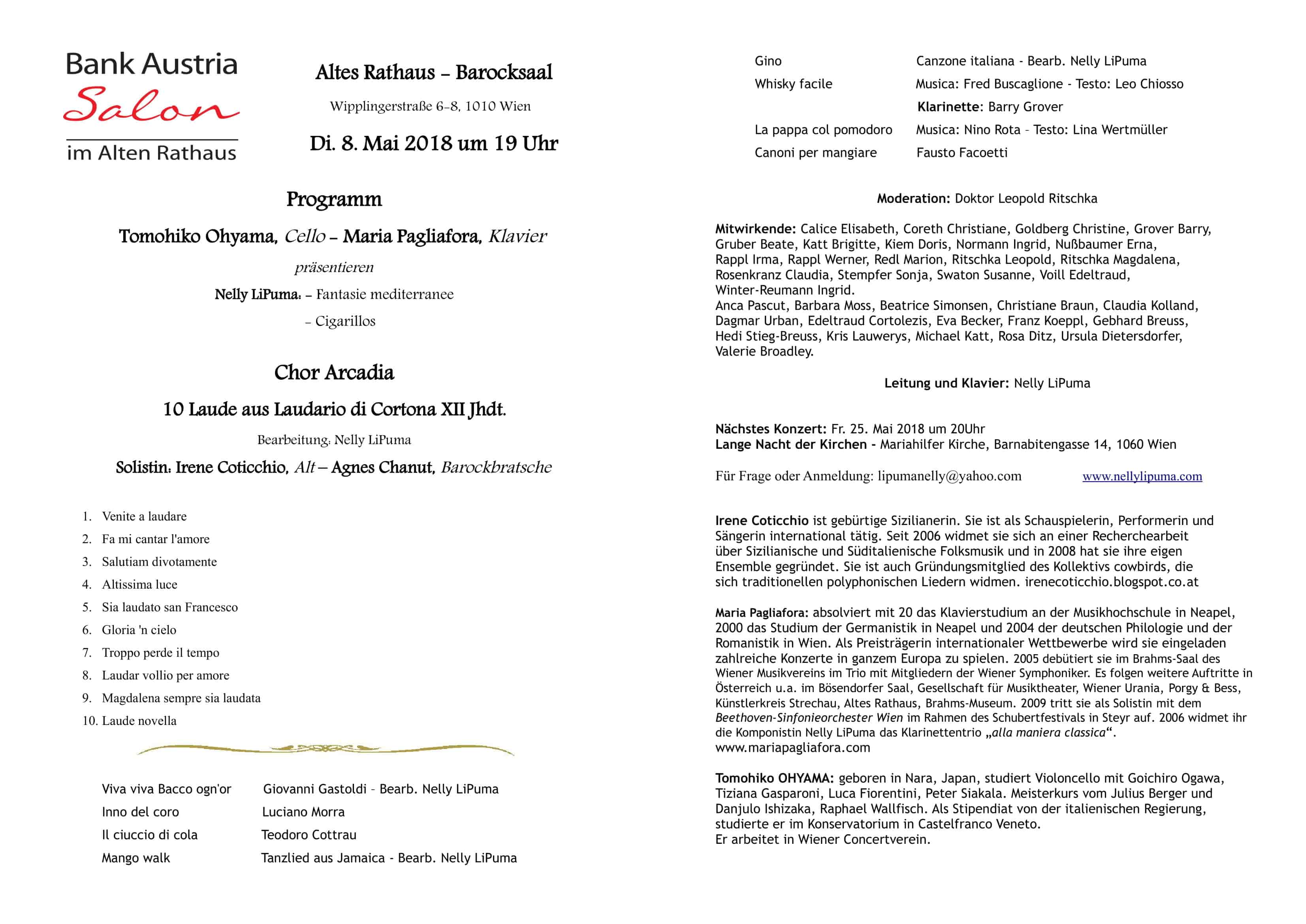 ARCADIA - Benefizweihnachtskonzert - 4. Dezember - Bezirksamt Margareten, Wien Italienischen Weihnachtsliederabend