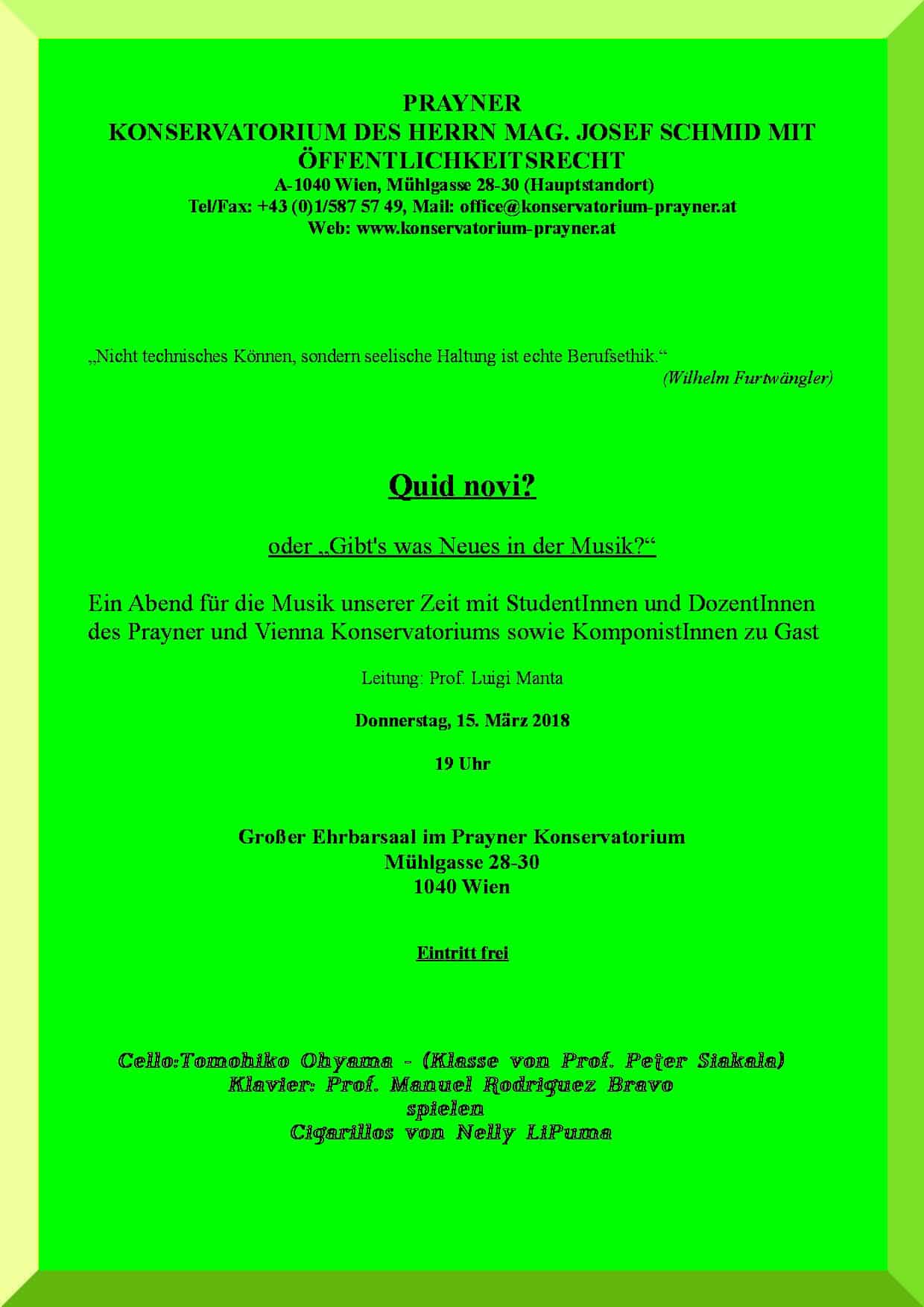 Prayner Konservatorium, Ehrbarsaal - März 2018 - Abend für Zeitgenössische Musik - Klasse Prof. Luigi Manta